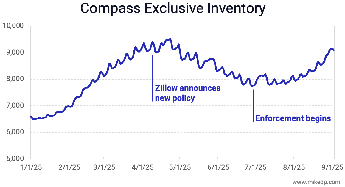And here’s where it gets interesting: the number of Compass exclusive listings since Zillow began enforcing its policy is UP – by over 1,300.